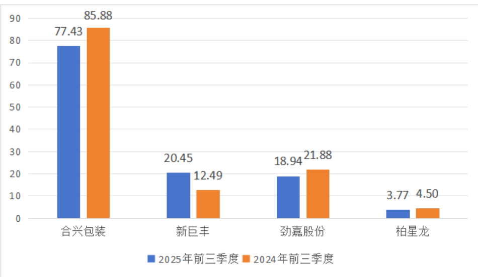 其中,合興包裝實現(xiàn)營收77.43億元,同比下降9.84%;歸屬于上市公司股東的凈利潤(簡稱“凈利潤”)1.60億元,同比增長10.52%。